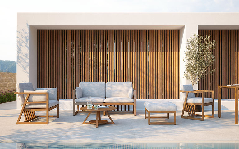 sofás, cadeirões e mesas de apoio